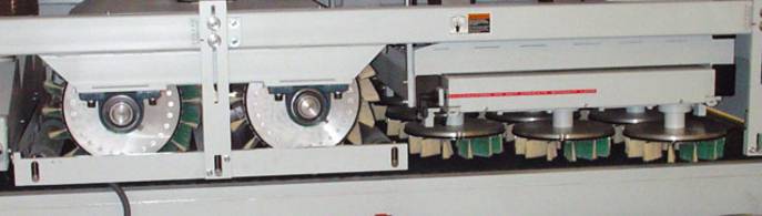 Üçlü sıra disk istasyonu 16 geniş şaşırtma diskten oluşur. Zımpara şeritleri ile donatılan bu diskler, dışmerkezli olarak dönerler ve çalışma parçasını her yönden ve açıdan zımparalarlar. Sonuç: Radius, düz ve şekilli yüzeylerin hepsinde mükemmel zımpara sonuçları. 2 geniş ters yönlerde dönen silindir, besleme yönünde bitişi de sağlarlar.